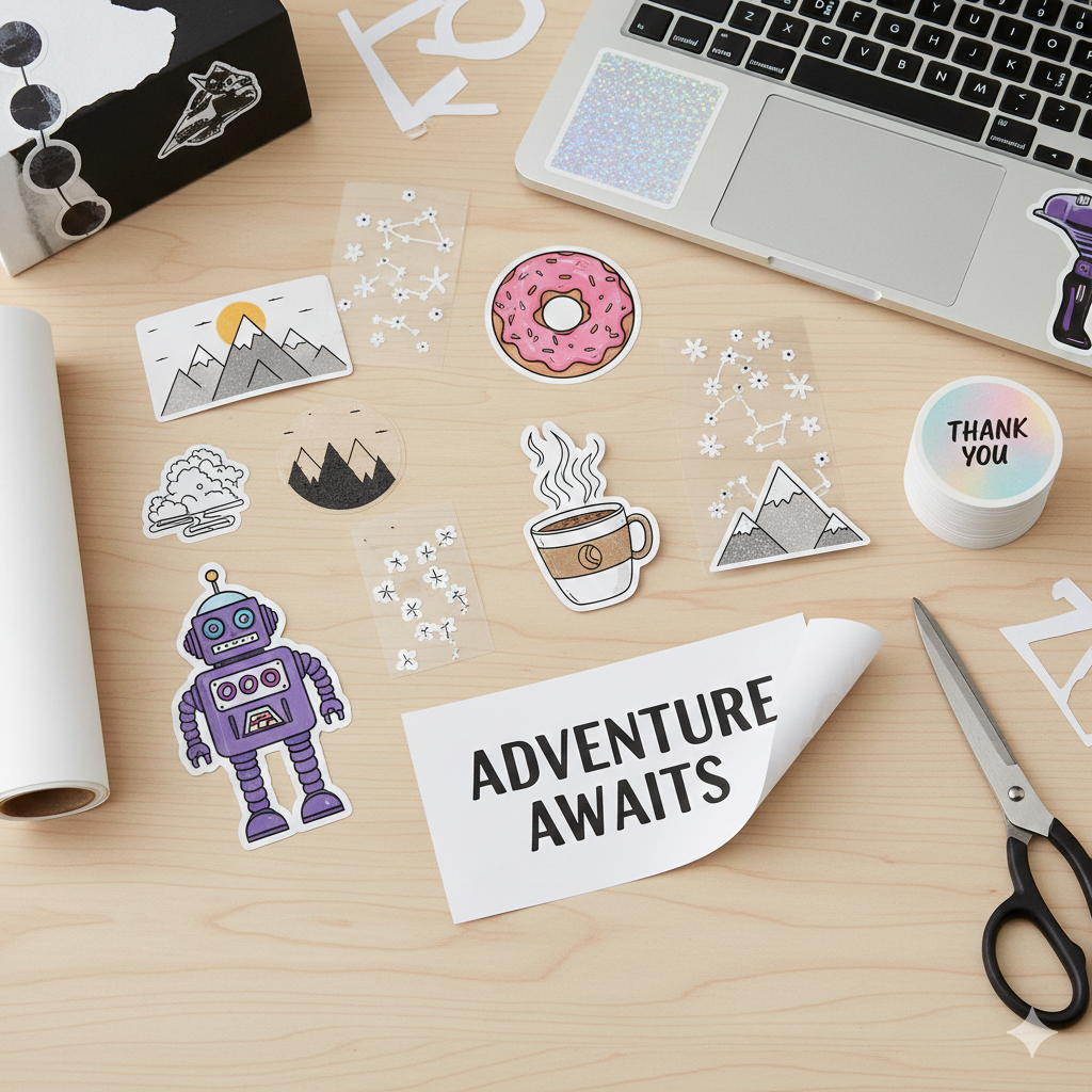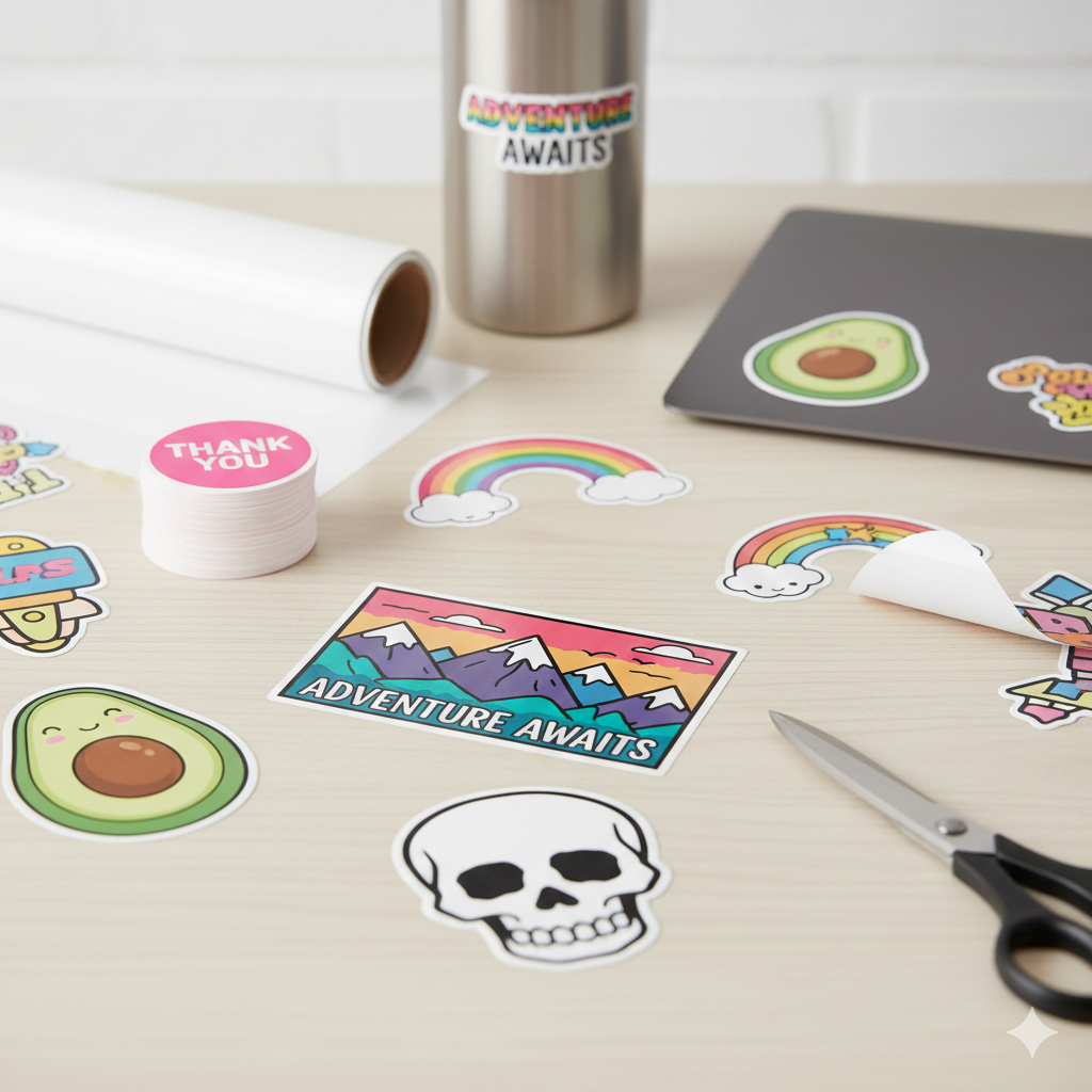 Our custom stickers are produced using durable vinyl, paper, or eco-friendly materials, suitable for both indoor and outdoor use.