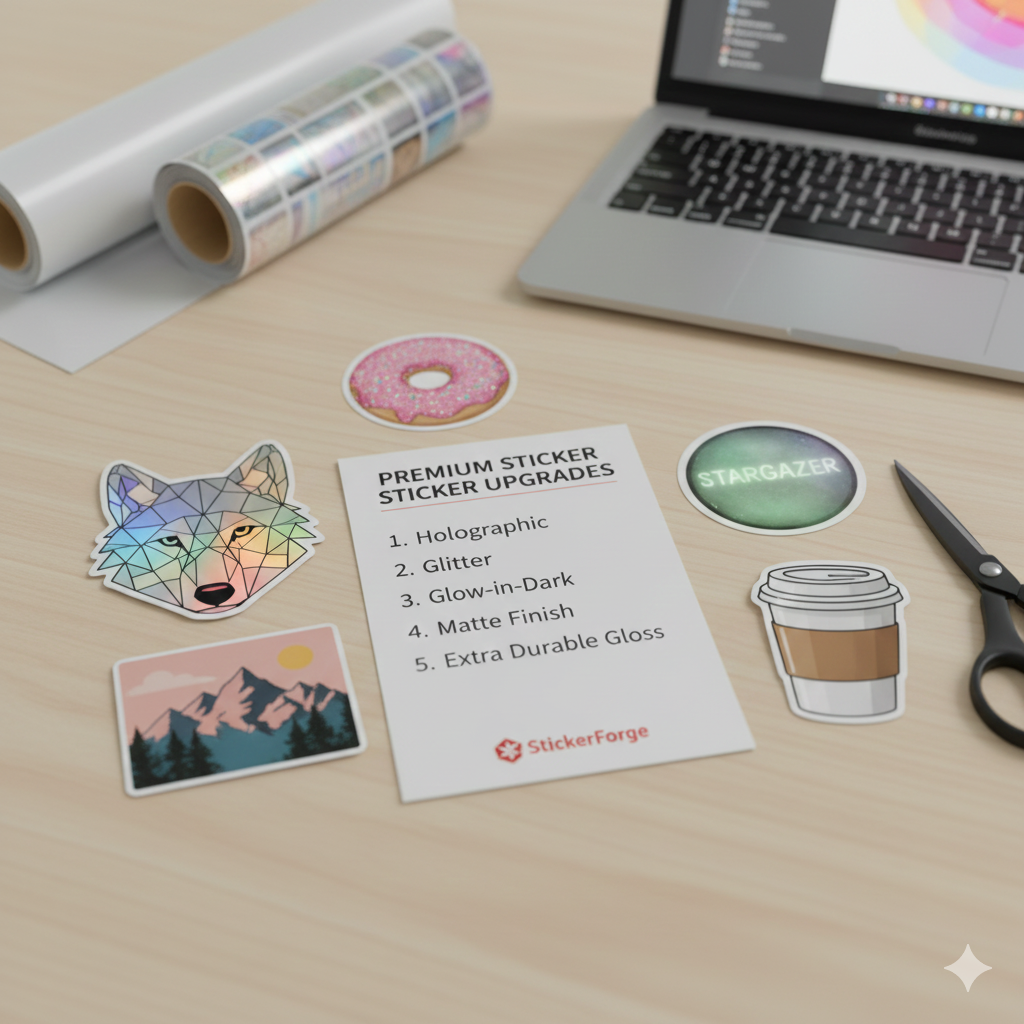 Choose from matte, glossy, holographic, or clear finishes for a polished, professional look.
