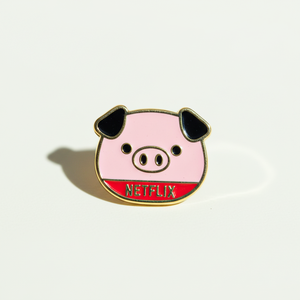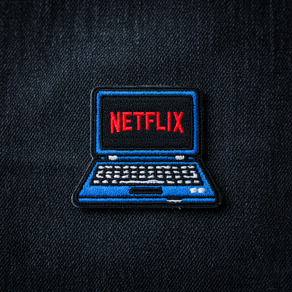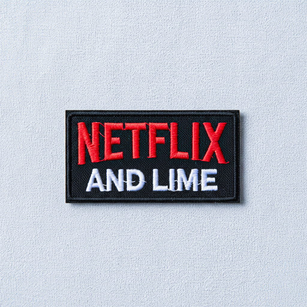 The collaboration began with embroidered patches, featuring the classic rectangular Netflix logo in red and white. Creative scope expanded to playful designs like a laptop patch with the Netflix name and the humorous “Netflix and Lime” variation, alongside minimalist black patches with bold red lettering. The partnership also introduced premium enamel pins, including a sleek gold “N” pin and a pig illustration paired with the Netflix wordmark. Complementing these, soft goods such as black socks with red accents and a black crewneck with an embroidered patch were produced, bringing the brand into wearable, high-quality merchandise.