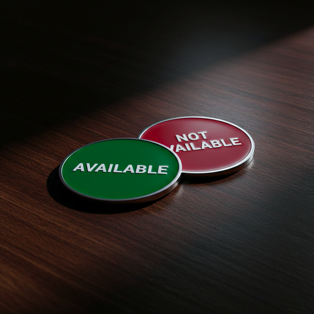Availability Coins (Red and Green): A bold red coin stating “NOT AVAILABLE Make Yourself Better” and a green coin reading “AVAILABLE Always Ready!” These motivational coins reinforced cultural messaging around engagement, reliability, and mindset, anchored by the Disney logo.